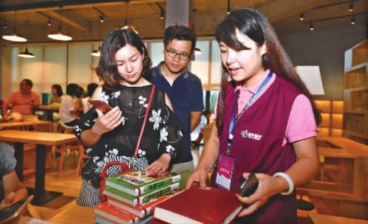 7月1日,长沙市雨花区和+共享图书馆,志愿者将市民捐赠的书籍进行整理编码,以便读者借阅。该馆位于圭塘河羽燕湖畔,是长沙首家共享图书馆,于当天正式开放。记者 田超 摄