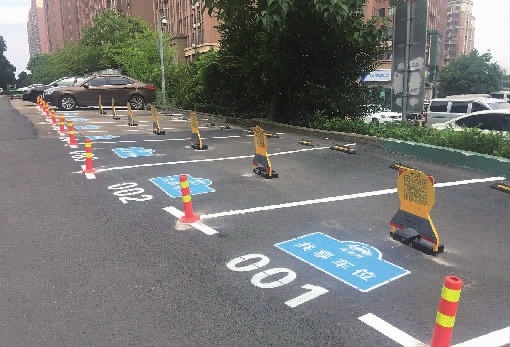 7月10日,长沙佑康医院前坪的共享车位。 记者 杨洁规 摄