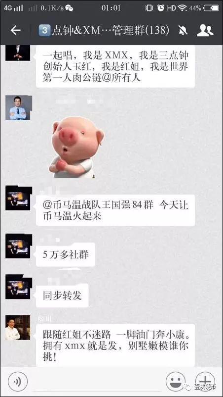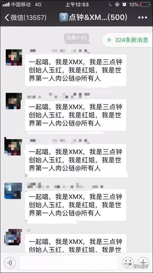 “一起唱,我是XMX,我是三点钟创始人玉红,我是红姐,我是世界第一人肉公链”。无数人在微信群里,集体刷屏,集体高呼......