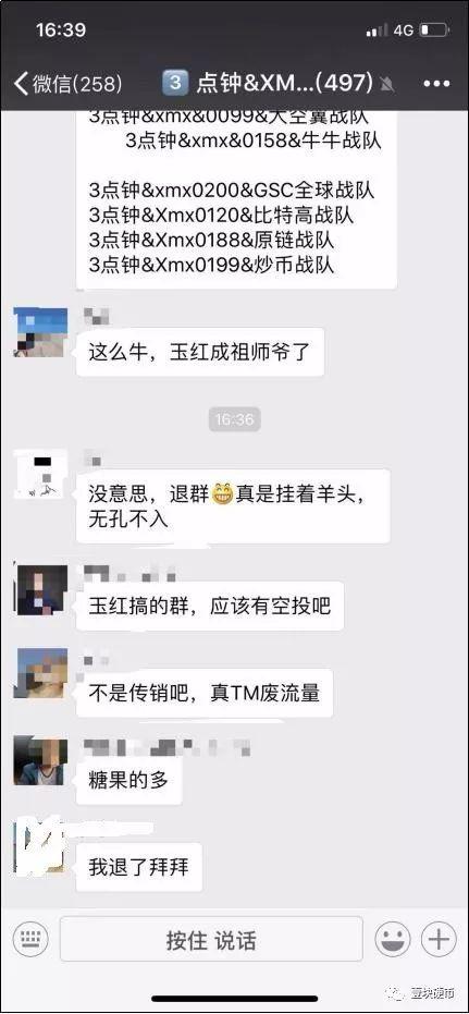这就是玉红牵头组建的“3点钟&XMX全球社群联盟”,他号称要做一场“伟大的区块链社区社群实验”,在各个微信群里,玉红享有“祖师爷”的称呼,具备至高无上的号召力。