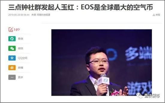 在5月28日的贵州国家数博会论坛上,他指EOS是史上最大的空气币传销币,顿时又在币圈引起轩然大波。