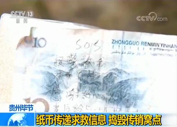 央视网消息:近日,贵州毕节警方捣毁一个传销窝点,解救12名被困人员,而这起案件的线索来源于一张写有求救信息的10元人民币。