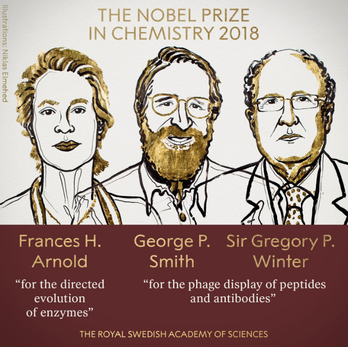 海外网10月3日电 当地时间10月3日,瑞典皇家科学院宣布,将2018年诺贝尔化学奖授予美国科学家弗朗西斯·阿诺德(Frances H. Arnold)、乔治·史密斯(George P. Smith)和英国科学家格雷格·温特( Gregory P. Winter),以表彰他们在酶的定向进化,肽类和噬菌体展示技术等方面的成绩。